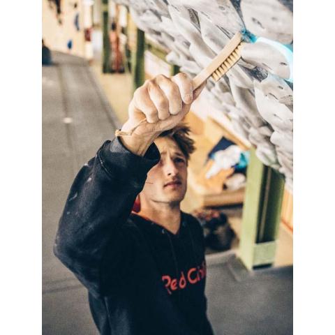 Well cleaned is half climbed - that knows anyone who has ever slipped from a greasy sloper. Dirty Hairy helps you to avoid unwanted leaving. Dirty Hairy is made in Germany and equiped with natural hair bristles. This guarantees optimal brushing of the holds and helps to make the world a bit cleaner. Dirty Hairy S fits perfectly in the brush loops of all of our chalk bags.