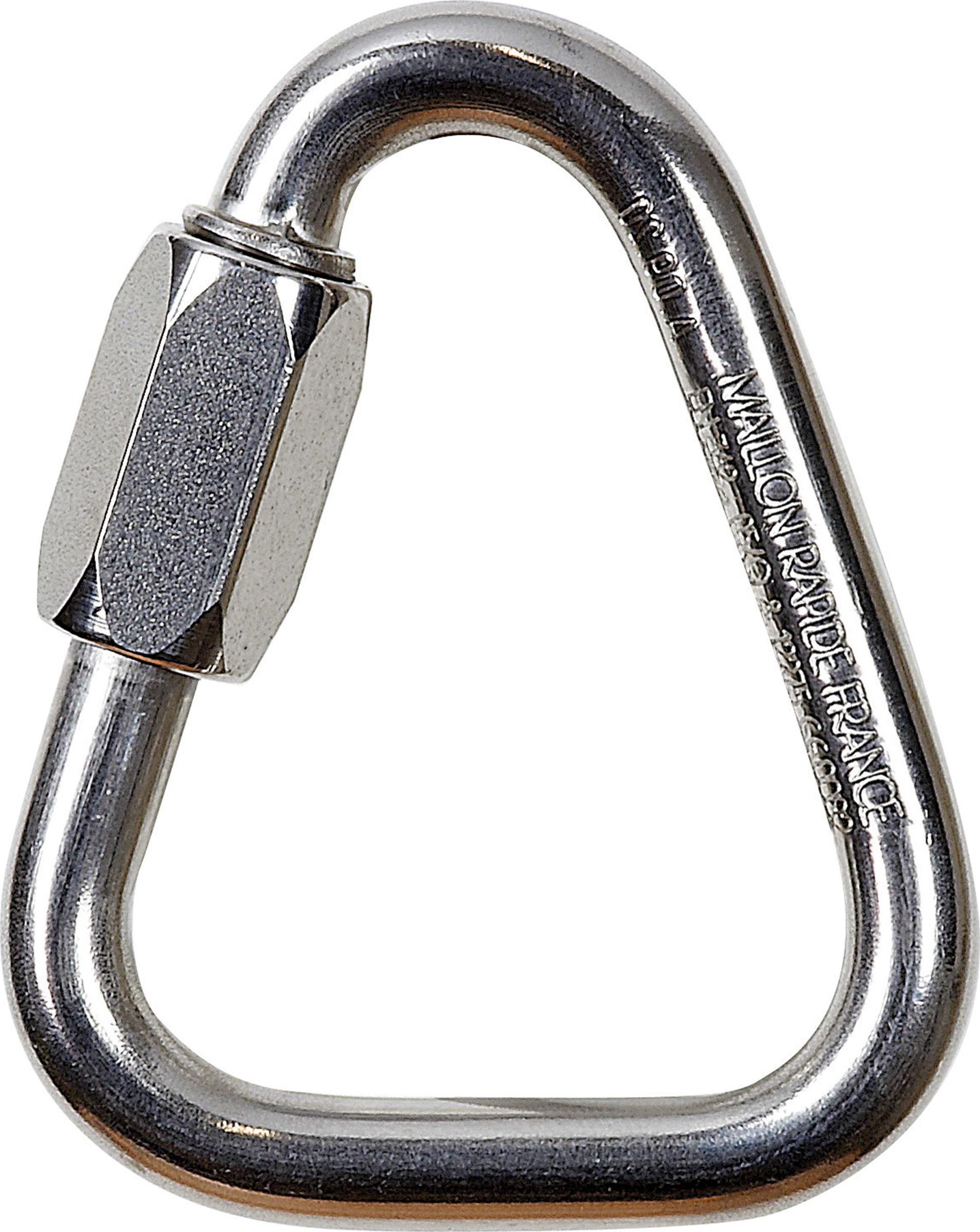 Ruostumattomasta teräksestä valmistettu kolmionmuotoinen ruuvilukitteinen teräksinen pikayhdistäjä pitkäaikaisiin kiinnityksiin, joissa halutaan estää kiinnityksen tarkoitukseton avaaminen. Soveltuu esim. työvaljaiden kahden kiinnityspistelenkin yhdistämiseen.