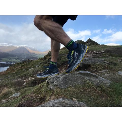 Ultralight 3/4 merinossa on T2 pehmusteet. Tukeva kompressio sukan reunuksesta holvikaareen auttaa pitämään nilkan ja jalkaterän tasapainossa. Sukissa on tiivis varren yläosa joka estää esim pikkukiviä ja nesteitä tulemasta sukan sisään. Lisäksi vahvistettu toebox joka kestää hyvin kulutusta sekä sallii jalan normaalin liikkuvuuden sukan kanssa. Suunniteltu erityisesti polkujuoksuun lämpimämmille keleille pitämään jalat kuivina ja siten juoksemisen mukavana.
