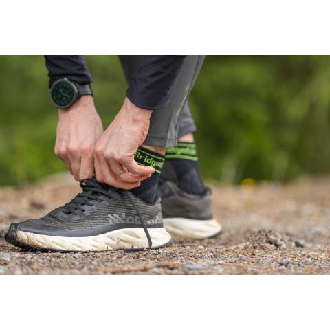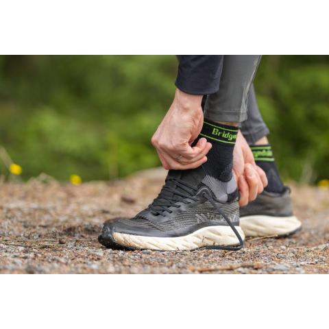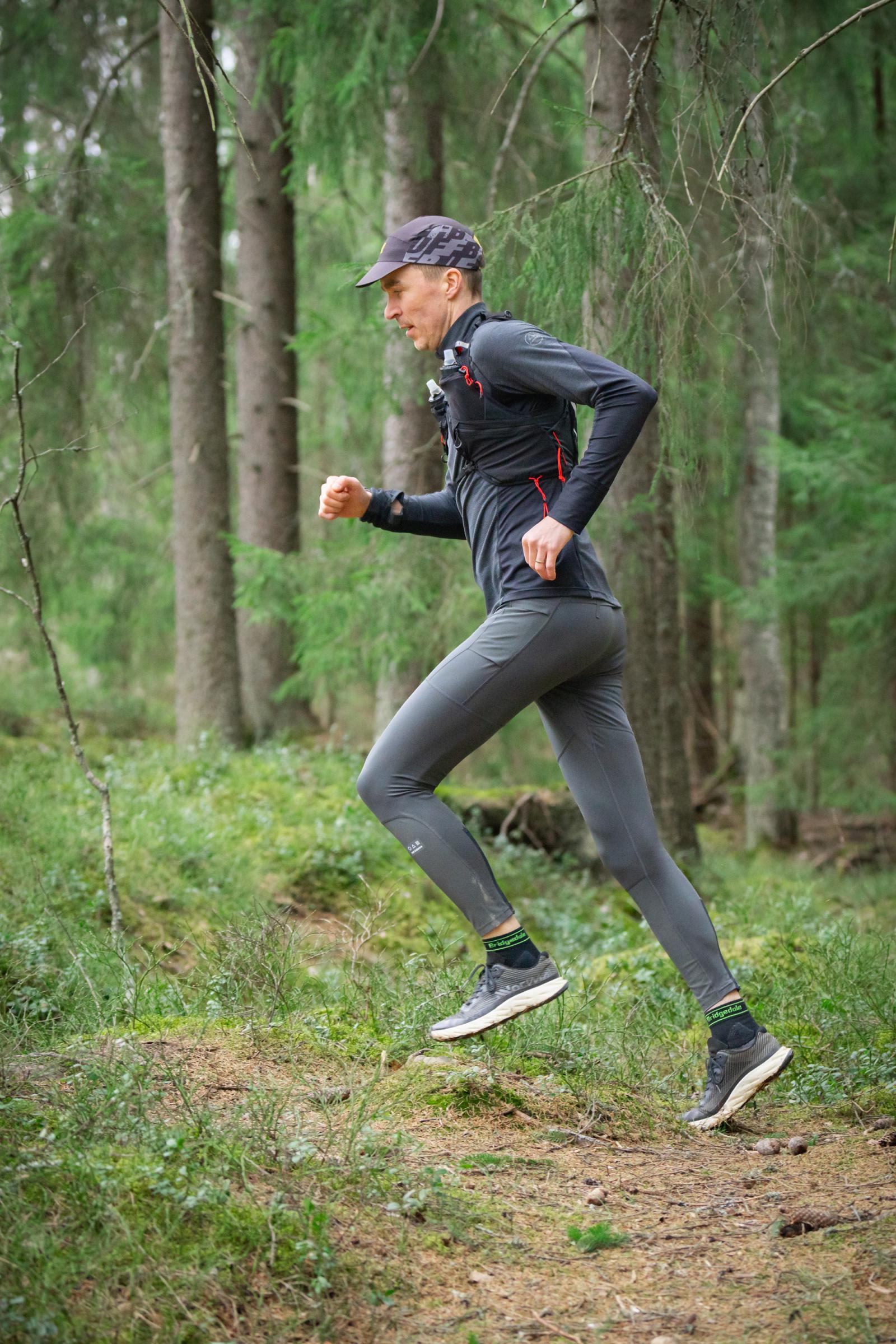 Miesten kevyt polkujuoksusukka keskimittaisella varrella.