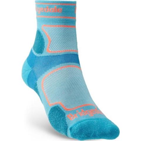 Naisten superkevyt sukka keskimittaisella varrella. Suunniteltu erityisesti polkujuoksuun lämpimämmille keleille pitämään jalat kuivina. Materiaalina hengittävä Coolmax takaa hyvän ilmanvaihdon.