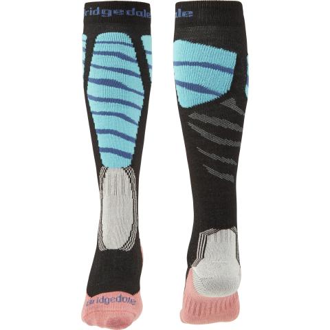 Pitkävartinen sukka lasketteluun aktiiviharrastanaiselle. Muotoutuu todella hyvin jalkaan ja siirtää kosteuden tehokkaasti pois iholta. Varpaissa paksumpaa neulosta lämpimyyden säilyttämiseksi. Muu neulos ohuempaa. Nilkassa ja kantapäässä olevat neulokset helpottavat monoon jalkaan laittamista. Tukevat kiristykset nilkan ja jalkapöydän ympäri pitävät sukan paremmin paikoillaan. Pohkeessa lisäjoustoa antavaa neulosta. Sukan suulla leveä kaksinkertainen resori.