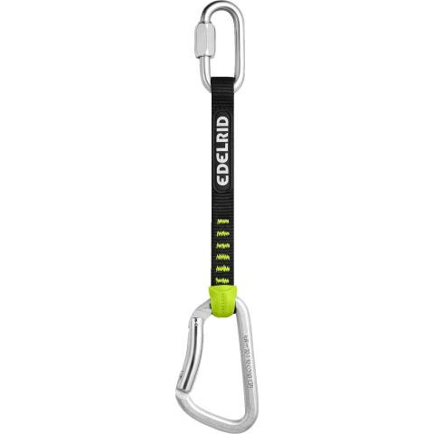 Extremely robust climbing gym quickdraw set with steel carabiner and wear indicator.