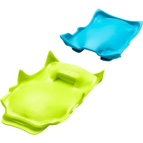 Anti-bot plates with a dual-component construction. The hard plastic frame ensures a secure fit, the softer plastic actively prevents snow from building up.