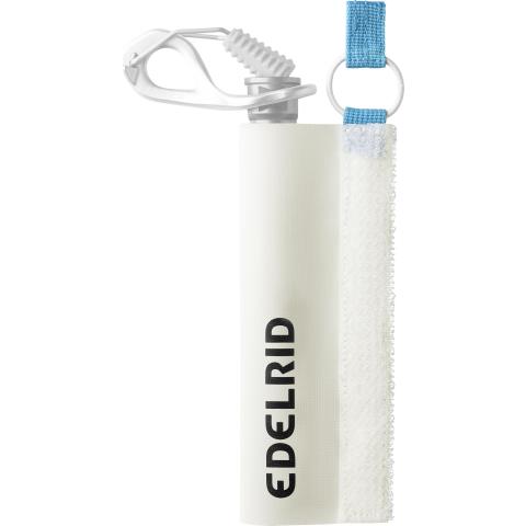 Kuljetus- ja suojapussi Edelrid Raya Lite jääruuville. Jääruuvi pysyy hyvin suojattuna tukevan pressukangasrakenteen ansiosta.