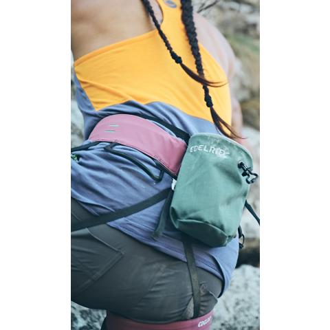 - Five gear loops, two laminated attachment options for ice screw clips, and a chalk bag loop at the back