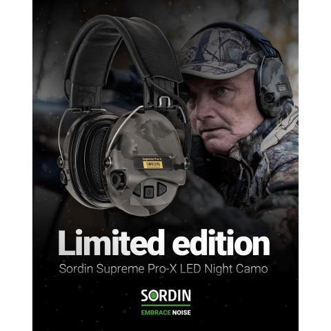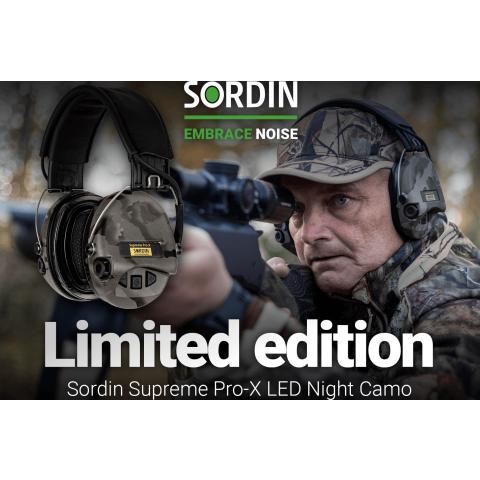 Vesitiiviit mikrofonit molemmilla puolilla tarjoavat suuntaavaan kuulon. Hi-Fi luokan kaiuttimet ja vesitiivis elektroniikka sisäpuolella takaavat luotettavan toiminnan kaikkein vaativimmissakin olosuhteissa. Valaisin jättää molemmat kädet vapaiksi ja tarjoaa valoa katseen suuntaan. Musta nahkainen pääpanta ja night camo -maastoväriset kupit. Sordin Supreme-sarja on kehitetty parantamaan työympäristöäsi ja myös vapaa-aikaasi, kun oleskelet melussa.