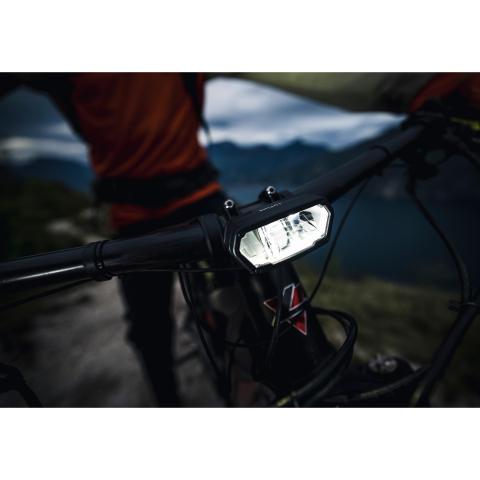 Kevyt ja tehokas sähköpyörävalaisin langallisella kaukosäätimellä. Valokeilan muoto noudattaa tiukkaa saksalaista stVZO-normia.