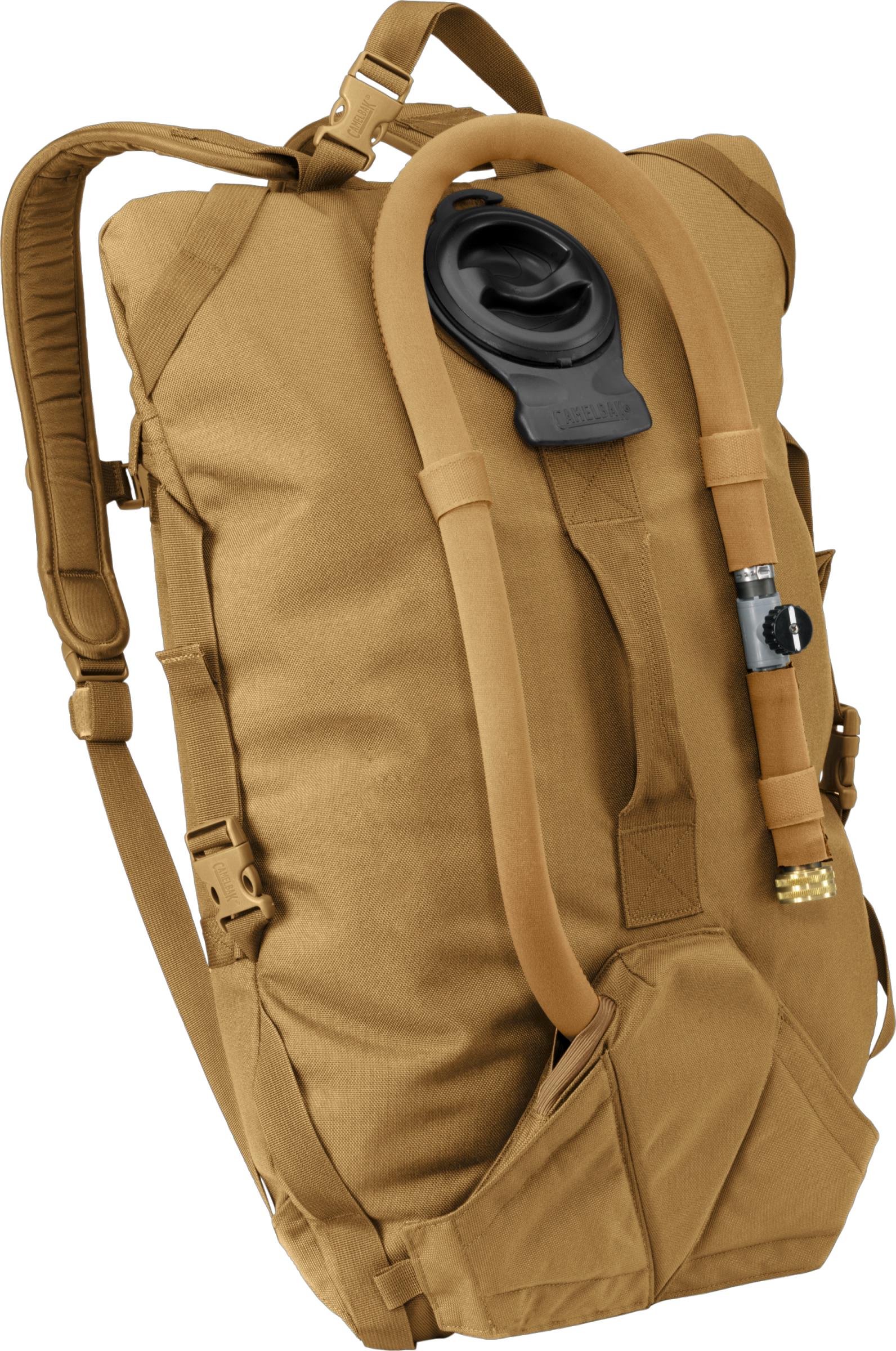 Vesihuoltoon: Veden kuljettamiseen ja jakamiseen sotilaskäyttöön suunniteltu suuritilavuuksinen 25L CamelBak Mil Spec. Helppo kuljettaa selässä integroidulla Independent Suspension kantojärjestelmällä tai se voidaan asettaa repun tukevalla kiinnityslenkillä ajoneuvon tai helikopterin kattoon roikkumaan. HydroGuard antibakteeripintaisten säiliön ja letkun ansiosta bakteerikannan kasvu on hitaampaa ja järjestelmä on turvallinen käyttää. Alaosassa suurikokoisen, sulkuventtiilillä varustetun ½” täyttöletkun lisäksi kaksi HydroLink -porttia, joiden avulla voidaan nopeasti täyttää jopa kolmea CamelBak juomarepun säiliötä samanaikaisesti ilman tarvetta ottaa säiliöitä ulos repuista (täytettäessä uusia Mil Spec Antidote säiliöitä tarvitaan väliin QL adapteri, tuotenro 90886). Täyttöletkun ympärillä eristesukka, jonka ansiosta vesi pysyy viileänä pidempään ja letku on suojassa haitallisilta UV-säteiltä.