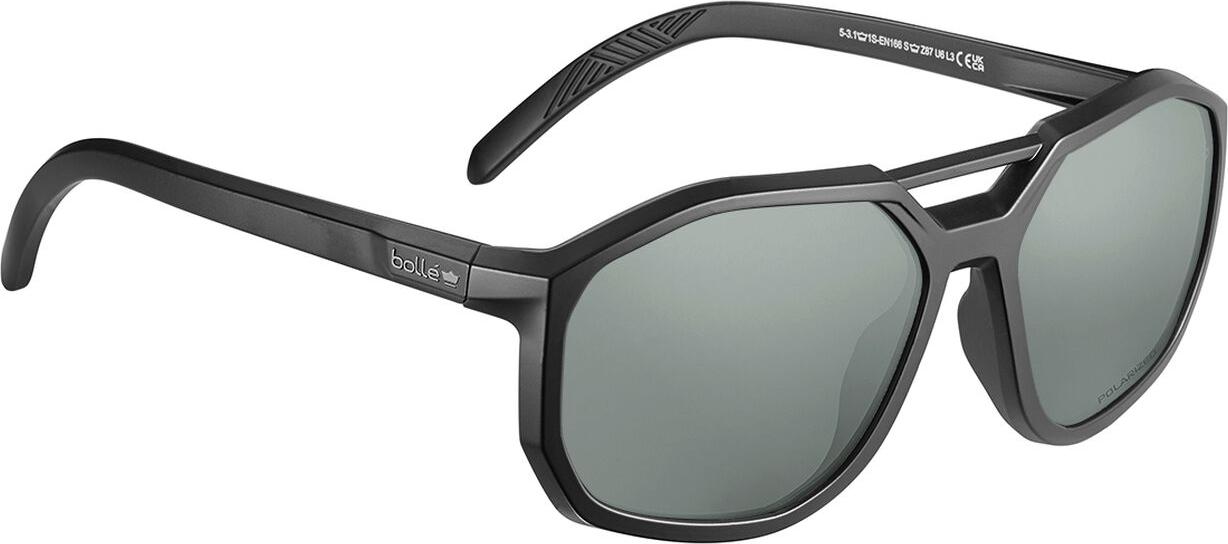 Kevyet unisex-aurinkolasit, joissa tyyli ja suorituskyky yhdistyvät, ja joissa on myös suojalasisertifiointi. Silver Flash peilipintaiset Polarized -linssit. BSSI (Bollé Safety Standard Issue) -viranomaissarjan Lifestyle-malli, jossa hillityn mattamusta kehys. Ympäristöystävällisimmällä muottitekniikalla valmistettu kehys, joka on valmistettu biopohjaisesta materiaalista, joka vähentää tuotteen valmistuksen synnyttämiä hiilidioksidipäästöjä.