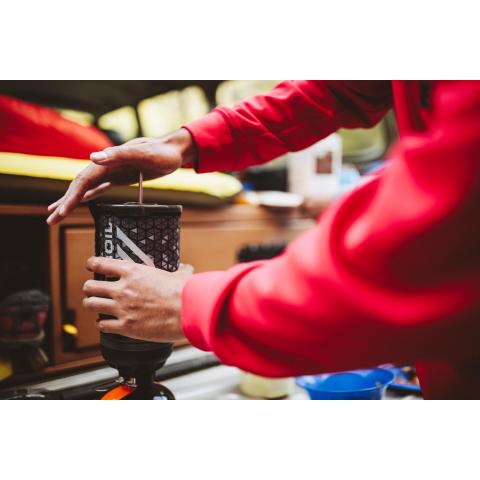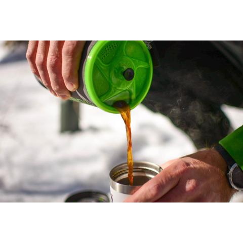 Pressopuristimen ja haudutusritilän yhdistelmä Jetboil keittimiin. Silicone Coffee Press -pressopuristimella valmistat tuoreet kahvit missä tahansa muutamassa minuutissa ja voit nauttia ne suoraan keittimestä. Kahvinporot kiehuvaan veteen ja pressopuristimella suodatat nopeasti kahvit 1–5 henkilölle Jetboil-keittimelläsi. Suunniteltu toimimaan myös. esim. kalan tai vihannesten hauduttamisessa. Soveltuu Jetboil 0,8 L kupeille ja 1 L pitkille kupeille.