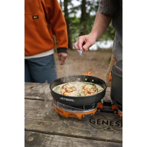 All-in-one keitinjärjestelmä. Pieneen kantolaukkuun pakattu kahden polttimen keitin. Toimii normaalilla retkikeittimen kaasulla. Reilun kokoinen kattila ja paistinpannu. Sytytys helposti piezolla. Genesis vie luonnossa keittämisen kokonaan uudelle tasolle.