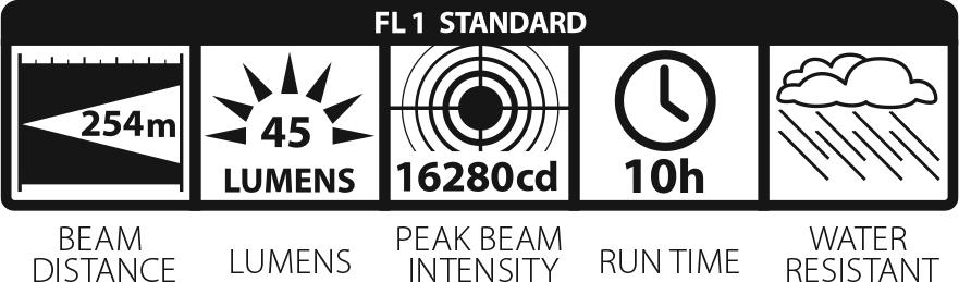 3C valaisimessa: Valon kantama 269 metriä, valon voimakkuus 18067 candelaa, valovirta 60 lumenia. Paloaika 4h 30min.