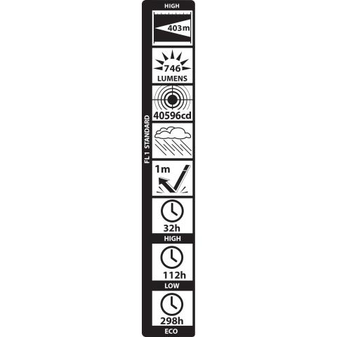 Suorituskyky ANSI FL1 standardin mukaisesti: Valon kantama 403 m, valovirta 746 lumenia, valon voimakkuus 40 596 candelaa. Paloaika Full Power asetuksella 32 h, Low Power asetuksella 112 h ja Eco asetuksella 298 h (joiden jälkeen on vielä 10 % alkuperäisestä valon voimakkuudesta jäljellä. Käytännössä valaisin palaa yhtäjaksoisesti yötä päivää n. pari viikkoa käyttökelpoisella valokeilalla, kunnes paristojen jännite on 0,99V ollen kokoluokkansa energiatehokkain valaisin markkinoilla!). Roiskevesitiivis IPX4. Iskunkestävä 1 m.