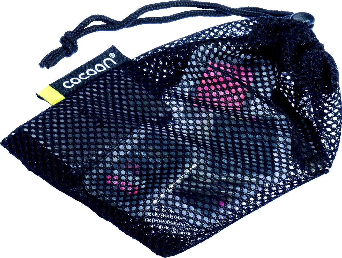 Päällinen ilmavaa verkkokangasta, joten näet helposti pakatun sisällön. Väri musta. Pussisetin mitat pakattuna pienimpään kuljetuspussiin nr 4: 14 cm x 10 cm x 3 cm. Kokonaispaino vain 65 g. Materiaali: 100 % Polyester Mesh. Konepesun kestävä 30°C.