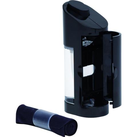 Yhdistelmäpakkaus, jossa tehokas huurtumisenestosuihke ja kyljessä saranoidun luukun takana korkealuokkainen mikrokuituliina. Soveltuu silmiensuojaimille ja muullekin optiikalle työhön, vapaa-aikaan ja taktisiin sovelluksiin. Tekee pinnoista myös anti-staattiset vähentäen pölyn ja lian tarttumista.