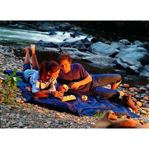 Monikäyttövaruste, joka muuntuu tarpeen mukaan peitoksi tai makuupussiksi. Toimitetaan käytännöllisessä nylon kuljetuspussissa, joka kääntyy tpisin päin mukavaksi fleece tyynyliinaksi kun Outdoor Blanket ei ole sisällä.