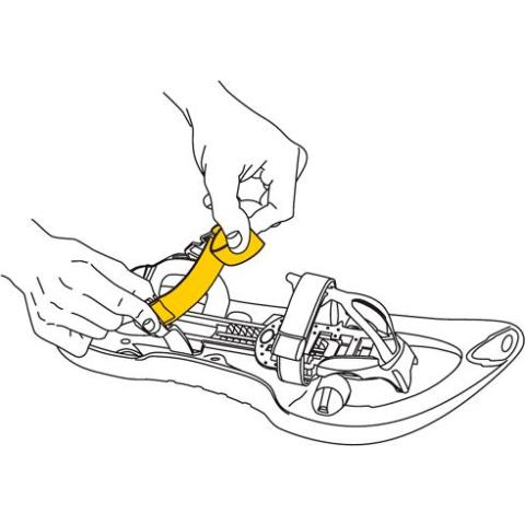 Nopea pukea ja ottaa irti. Kengän koko on helposti säädettävissä väillä 30-40. Lumikengät pysyvät tukevasti jalassa kahdella tarranauhalla.
