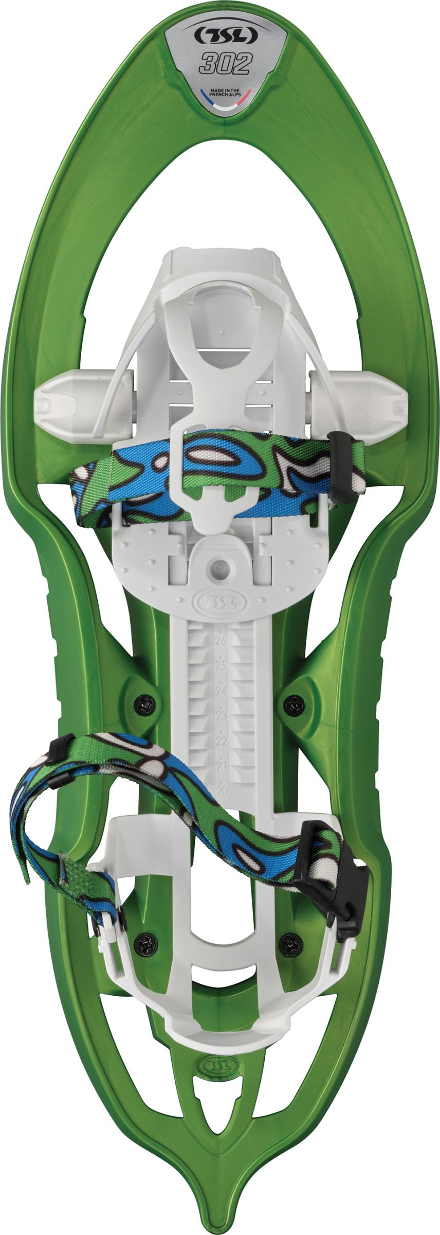 Lasten lumikenkä, jonka side on suunniteltu aktiiviseen käyttöön. 3D-tiimalasimuodon ansiosta kengät kantavat hyvin lumessa. Edessä oleva muovihammastus ja pohjassa olevat kuusi teräspiikkiä lisäävät pitoa jäällä.
