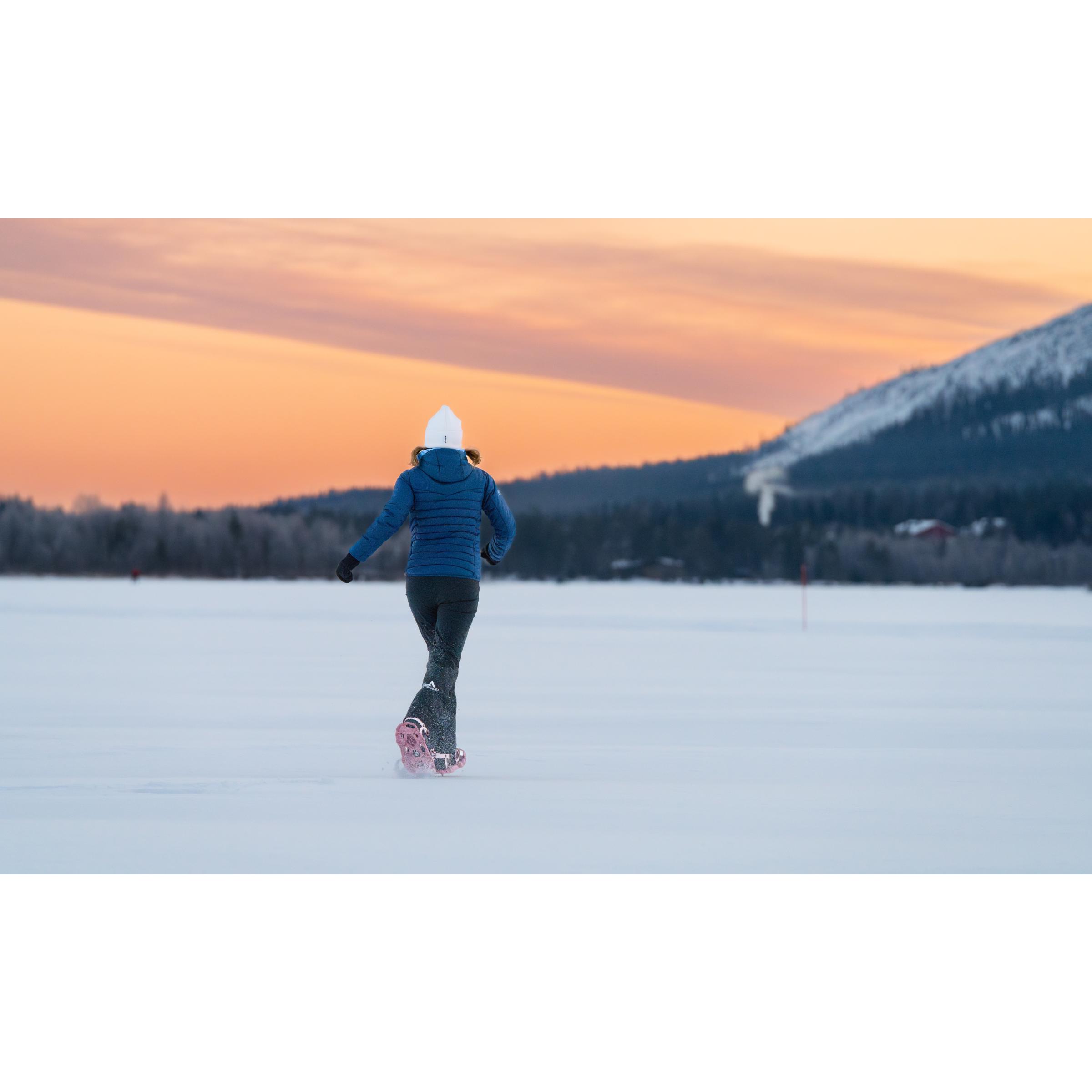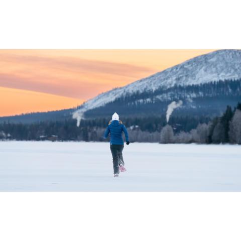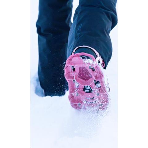 Näillä kengillä jäisellä ja lumisella alustalla liikkuminen on helppoa. Käveleminen sujuu kuin talvikengillä, mutta kantava pinta-ala on kaksinkertainen ja pito jäällä erinomainen.