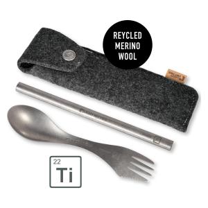 Spork'n Straw Kit Titanium, Titaaniaterin+pilli+Merino