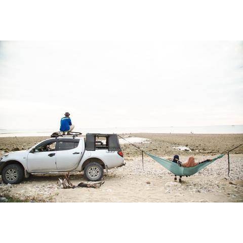 Kiinnitysköydet eivät sisälly toimitukseen, suosittelemme hankkimaan Ticket To The Moon kiinnitysköysipussin tai puita suojaavan Tree-Friendly Strap-pakkauksen.