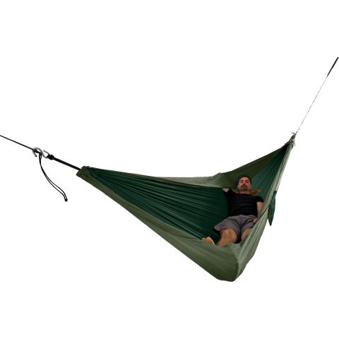 King Size Hammock Express Setting Bag on uusi ratkaisu, jolla pääset kirjaimellisesti mukavuusalueelle käden käänteessä. Irrotettavan puolikuun muotoisen myyntipakkauksen lisäksi King Size Hammockissa on nyt myös toinen, kiinteä suorakaiteen muotoinen tasku johon riippumaton voi pakata. KingSize-koon edut: yksin tai kaksin (kivempaa...) käytettynä voit asettua vinottain ja toimii unelmamukavana vuoteena parvekkeella tai kesäyössä.