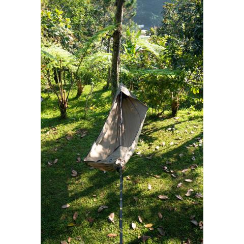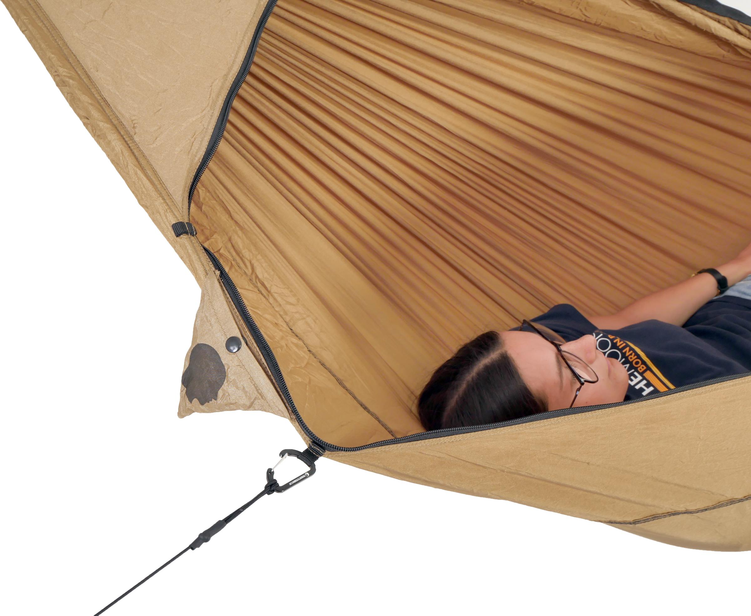 Hyttysverkon silmäkoko on 200 reikää / cm2. Pienetkään ötökät eivät pääse sen läpi, mutta ilma kulkee hyvin. Verkon ripustusnaru pitää myös itse riippumaton optimaalisessa muodossa (2,8 m +/-10 cm). Pakkauspussi toimii säilytyspussina ja sen saa nukkumisen ajaksi kiinni ripustusnaruun.