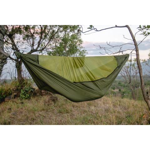 Hyttysverkon silmäkoko on 200 reikää / cm2. Pienetkään ötökät eivät pääse sen läpi, mutta ilma kulkee hyvin. Verkon ripustusnaru pitää myös itse riippumaton optimaalisessa muodossa (2,8 m +/-10 cm). Pakkauspussi toimii säilytyspussina ja sen saa nukkumisen ajaksi kiinni ripustusnaruun.