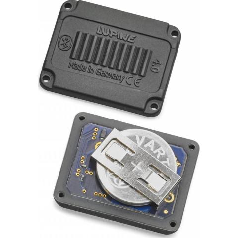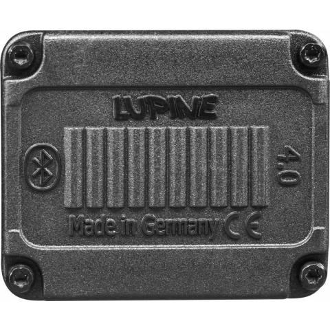 Lupine SL AF valaisimen langaton Bluetooh kauko-ohjain. Isoa painiketta käytetään vaihtamaan valot pitkille, ja pientä käytetään vähentämään lyhyiden valonvoimakkuutta. Toimii CR2032 paristollla.