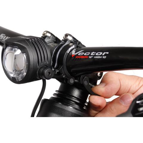 Pikakiinnike, jolla Lupine SL A, SL AF, Neo, Piko, Blika tai Wilma valaisimen rungon saa kiinni polkupyörän ohjaustankoon.Soveltuu 31,8 mm ohjaustangolle. Kiinnikkeen voi asentaa suoraan lampun runkoon kiinni. Ei vaadi paljon tilaa ohjaustangosta. Kiinnike on valmistettu alumiinista ja ruuvit ruostumattomasta teräksestä.