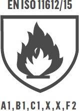 - Täyttää CE EN ISO 13688/13, EN ISO 11612/15 luokka A1, B1, C1, F1 sekä EN 1149-5/08 standardien vaatimukset
