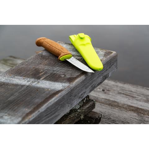 Kelluva sileäteräinen puukko offshore työkäyttöön, kalastusammattilaisille, pelastuskäyttöön, melojille, purjehdukseen, virkityskalastukseen ja muille jotka viettävät aikaa veden ääressä. Soveltuu monipuoliseen yleiskäyttöön. Kahvan ja tupen kirkkaan lime väri tekee havaitsemisesta helppoa. Esim. kalanviljelyaltailla uppoava puukko voi aiheuttaa huomattavia kustannuksia, joten kelluvuudella voi olla myös taloudellinen ulottuvuus.