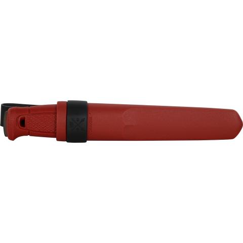 Toimitetaan polymeeritupin kanssa. Puukko voidaan syöttää tuppin molemmin päin, joten käyttö on tehokasta niin hämärässä kuin oikea- ja vasenkätisillekin. Tuppi puukkoineen on esimerkiksi kaupassa käyntiä varten helppo napsauttaa irti vyölenkistä ja jättää ajoneuvoon.