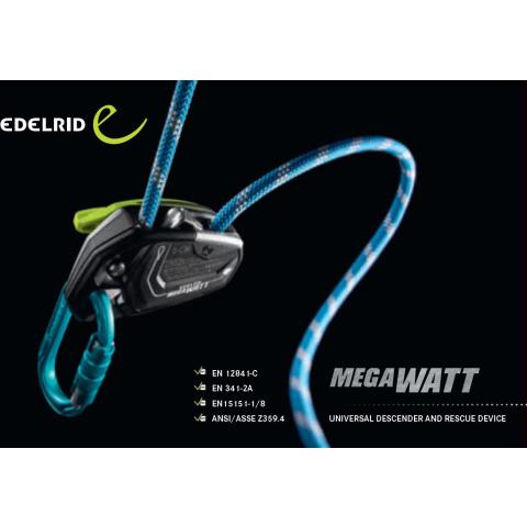 Edelrid MegaWatt laskeutumislaitteen lyhyt esittely. Saatavissa painettuna ja .pdf:nä. Englanninkielinen.