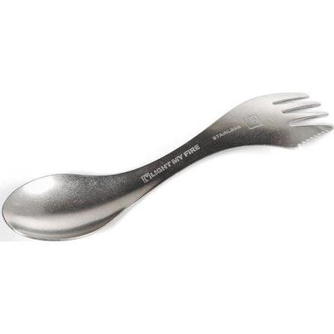 Ruostumattomasta teräksestä valmistettu lusikka-haarukka-veitsi. Äärimmäisen kestävä ja kevyt, sekä ympäristöystävällinen. Soveltuu käytettäväksi suoraan tulen yllä.