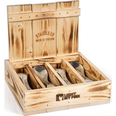 40 kpl ruostumattomasta teräksestä valmistettu lusikka-haarukka-veitsiä. Äärimmäisen kestävä ja kevyt, sekä ympäristöystävällinen. Soveltuu käytettäväksi suoraan tulen yllä.