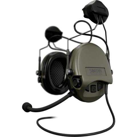 Sotilas- ja viranomaisvaatimukset täyttävä Dual Com kommunikaatiokuulonsuojain ARC-kypäräkiskokiinnityksellä, mikrofonipuomilla ja 6-Pol liittimellä. Vaimentaa ääniä tehokkaasti, mutta on silti profiililtaan ohut soveltuen erinomaisesti myös kiväärin kanssa käytettäväksi.