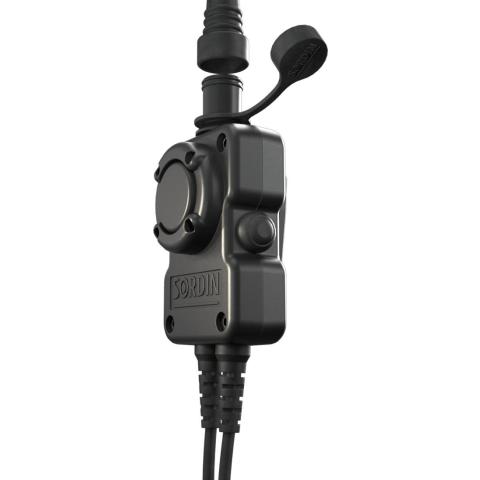 Helppokäyttöinen Push-To-Talk tangenttipainike Sordin kommunikaatiokuulonsuojaimiin. Dual Com. Mahdollistaa kahden radion tai matkapuheimen liittämisen kommunikaatiokuulonsuojaimiin.