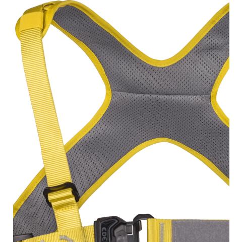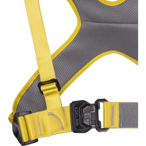Neljä automaattisesti lukkiutuvaa solkea mahdollistavat laajat säädöt ja takaavat täydellisen istuvuuden. X-muotoilun ansiosta valjaan saa aina istumaan oikein. Rintakiinnityspisteen korkeus säädettävissä. Alue tunnistetiedoille tai omille merkinnoille. Tarranauhapidikkeet esim. radiopuhelimelle.