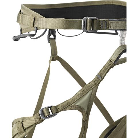 Yhteensä kuusi varustelenkkiä ja kaksi kiinnityskohtaa varustekarabiineille tai jääruuveille tarjoavat runsaasti säilytystilaa ja hyvät mahdollisuudet varusteiden järjestelyyn.