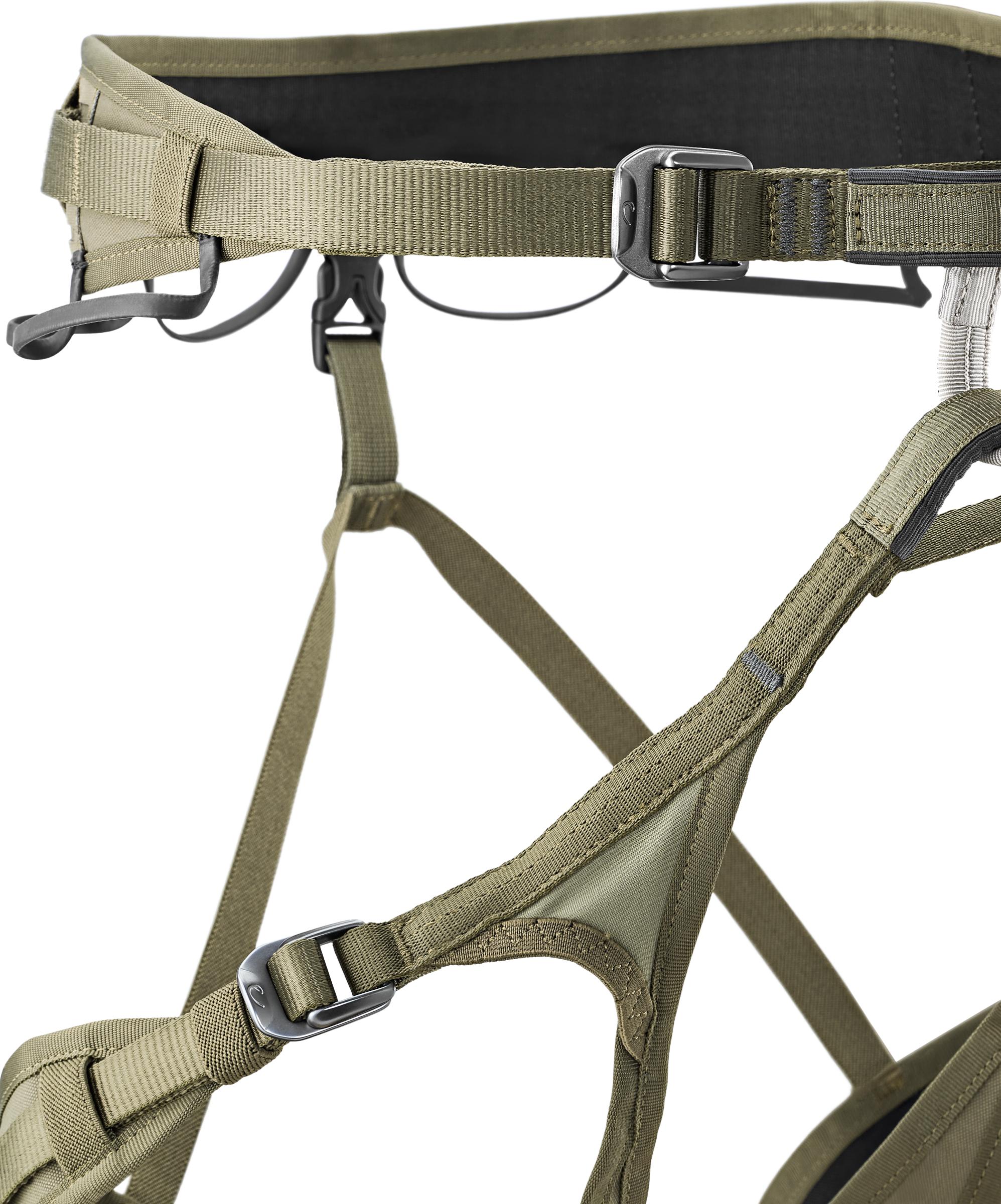 Lantiovyön ja jalkalenkkien neljä kevyttä ja kestävää alumiinista Slide Block -solkea voidaan avata kokonaan, mikä helpottaa valjaan pukemista ja säätämistä yksilöllisiin tarpeisiin.