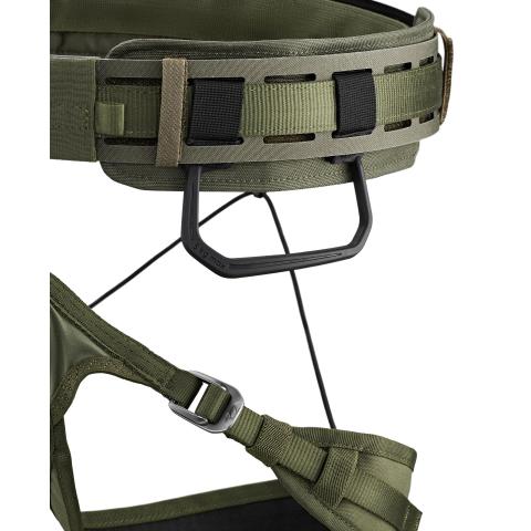 - Kaksi notkeaa varustelenkkiä, jotka voidaan sijoittaa yksilöllisesti valjaiden MOLLE-aukkoihin, varmistavat, että kaikki kiinnitetyt varusteet ovat aina käden ulottuvilla.