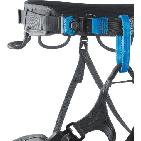 Lantiovyön edessä kiinnityspiste laskeutumislaitteelle, varmistamiseen jne. Jalkalenkeissä ja lantiovyössä Triple Lock pikasoljet, joiden ansiosta pukeminen ja riisuminen on erittäin nopeaa ilman tarvetta säätää valjaita uudelleen, ja nämä kolmetoimiset soljet lienevät markkinoiden turvallisimmat pikasoljet. Pukemisen kannalta oleelliset alueet erottuvat sinisinä, joka myös nopeuttaa hahmottamista ja pukemista.