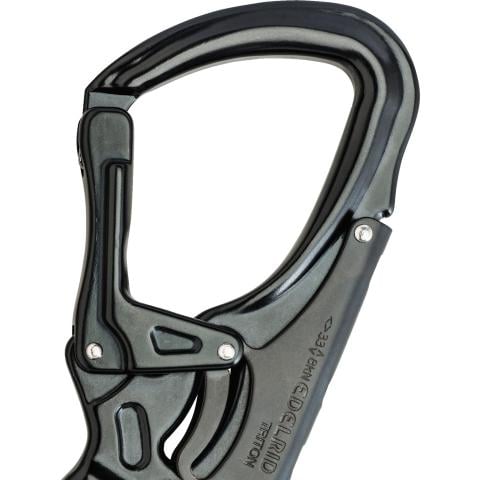 Kevyt kaksitoimisella automaattilukituksella varustettu vahva alumiinikiinnitin 25 mm portin avaumalla. Mahdollistaa yhdellä kädellä käyttäen helpon kiinnittymisen halkaisijaltaan erilaisiin rakenteisiin ja ankkuripisteisiin.