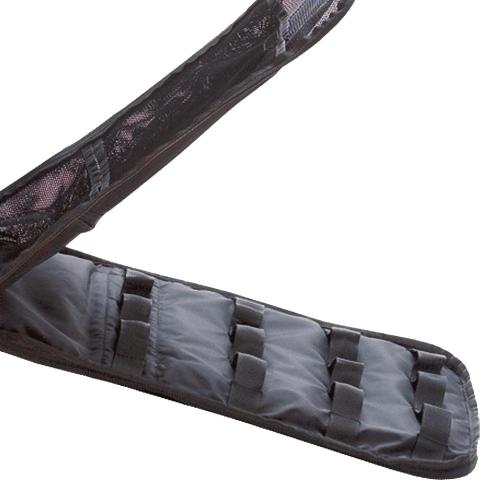 Koko etupaneeli aukeaa, jolloin saadaan koko repun sisältö kerralla esiin selkeästi. Sisällä neljä ommeltua hihnaa, joissa 12 varustelenkkiä, jotka tehostavat organisointia. Ulkopuolella vetoketjutaskut pientarvikkeille, tai esim., inventaarilistalle repun sisällöstä.