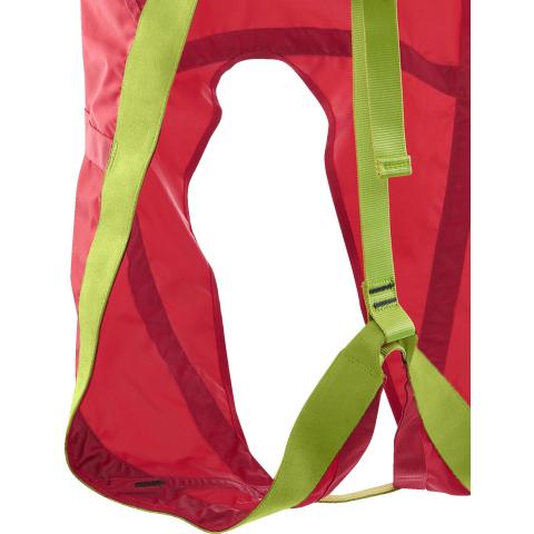 Helppo pukea myös istuvalle tai makaavalle potilaalle. Hihnat ovat nopeat ja turvalliset käyttää kolmetoimisten pikasolkien ja sujuvasti säätyvien automaattilukitteisten solkien ansiosta. Elastinen olkahihna, joka auttaa asettamaan valjaan hyvään asentoon ja myös pitämään sen siinä.