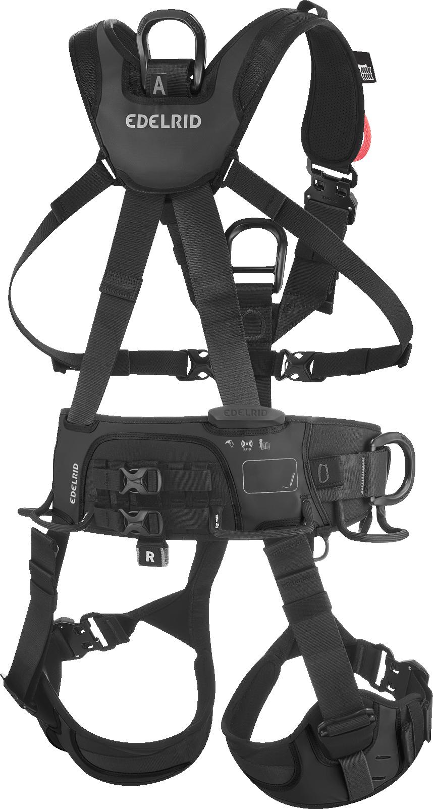 Lantiovyöllä neljä muotoiltua varustelenkkiä yhteensä 12 sulkurenkaalle. Maksimipaino 25 kg. Takaosassa lisäksi kaksi nauhallista paikkaa muille lisävarusteille kuten ensiapupakkaukselle. Molemmissa jalkalenkeissä lisäpaikka Edelrid SM Clip työkalukiinnittimille. Olkahihnoissa pidikkeet, joihin voidaan laittaa radiopuhelin tai esim. ohjata putoamisen pysäyttävän köysitarraimen nykäyksenvaimennin sopivasti. Täyttää Euroopan EN361, EN358 ja EN813 standardien vaatimukset ja lisäsertifioitu 150 kg asti (=käyttäjän maksimipaino varusteineen) sekä ANSI / ASSE Z359.11-2014. CE. Väri: Täysmusta. Materiaalit: Kuituosat polyesteri, säätösoljet teräs, kiinnityspisteet alumiiniseos. Maksimielinikä 14 vuotta (= 4 vuotta varastointia + 10 vuotta käyttöä).