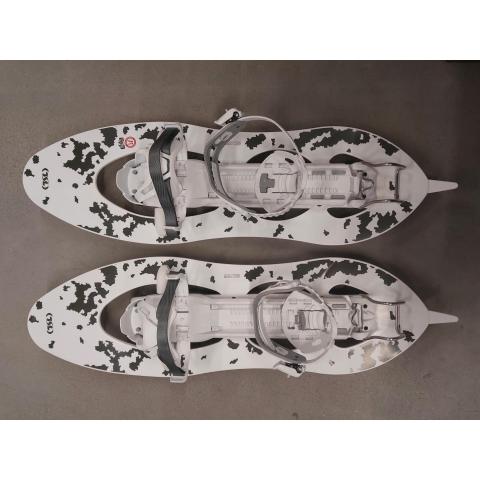 M05 lumicamo kuviolliset isokokoiset ja pehmeässäkin lumessa kantavat komposiittilumikengät 6:lla teräspiikillä. Parhaimmillaan tasaisessa, avoimessa maastossa ja pehmeässä lumessa. Soveltuvat sekä vapaa-aikaan että työkäyttöön. Tiimalasimuotoilun ansiosta kävely on kevyttä pitkienkin matkojen ajan.