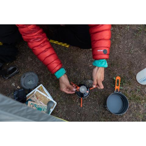 Ultrakevyt keitinkokonaisuus, joka pakkautuu poikkeuksellisen pieneen tilaan ja keittää erittäin tehokkaasti vettä. All-in-one -ratkaisu, jonka kaikki osat 0,8 litran kattilaan. Kannessa on valmis pidike 100g kaasulle. Pakattuna koko on 112 x 130 mm. Myös 230 g kaasu mahtuu kattilaan, jos siellä ei ole muita keittimen osia. Paino keveimmillään toimintavalmiudessa on vain 201 g (keitin + kattila, ilman kaasua). Paino kaasusäilöin jalan kanssa 232 g.